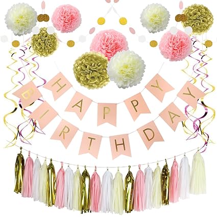 Litaus Pink And Gold Birthday Decorations Happy Birthday Banner