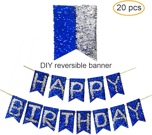 Amazon Com Blue And Silver Sequin Banner For Party Decorations