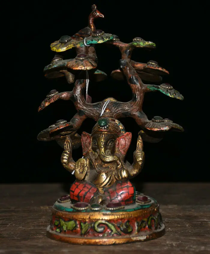 Wedding Decoration 6 Old Tibet Bronze Turquoise Ganapati Ganesh