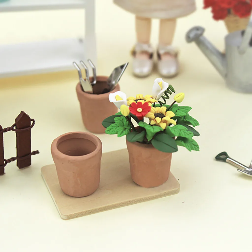 Baby Girl Dollhouse Miniature Argil Flower Pot Pretend Play Toys