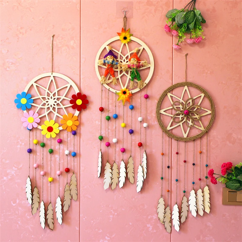 Diy Wooden Hanging Dream Catcher Hemp Rope Embroidery Moon Stars
