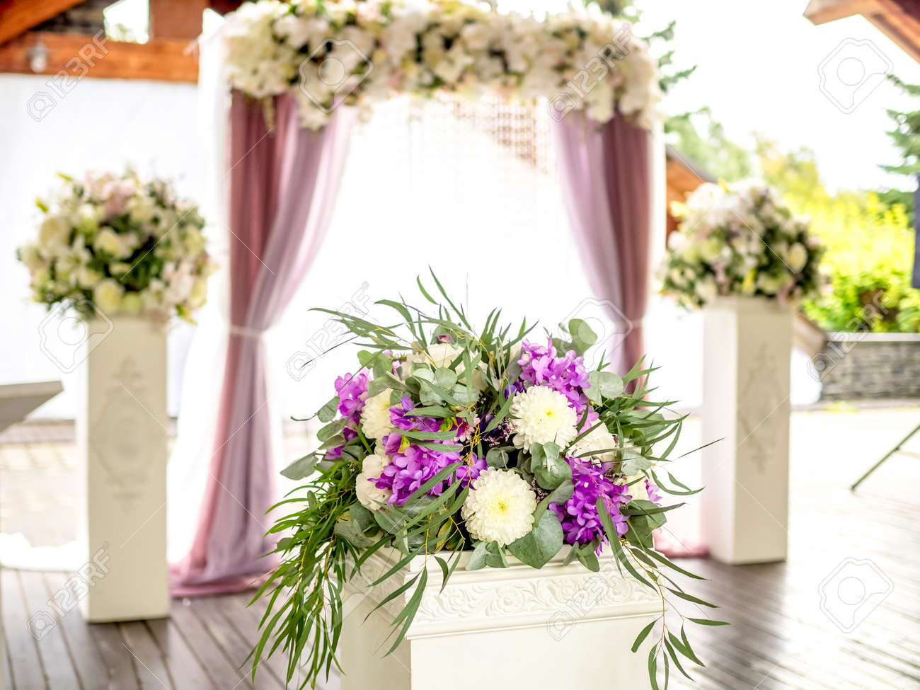 Beautiful Flower Wedding Decoration Stock Photo Image Of Groom