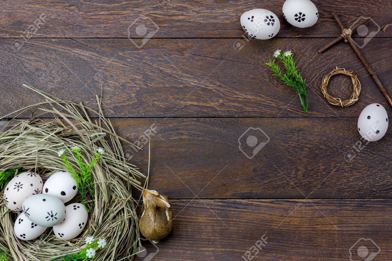 Top View Easter Background Happy Easter Eggs Pained Also Rabbin