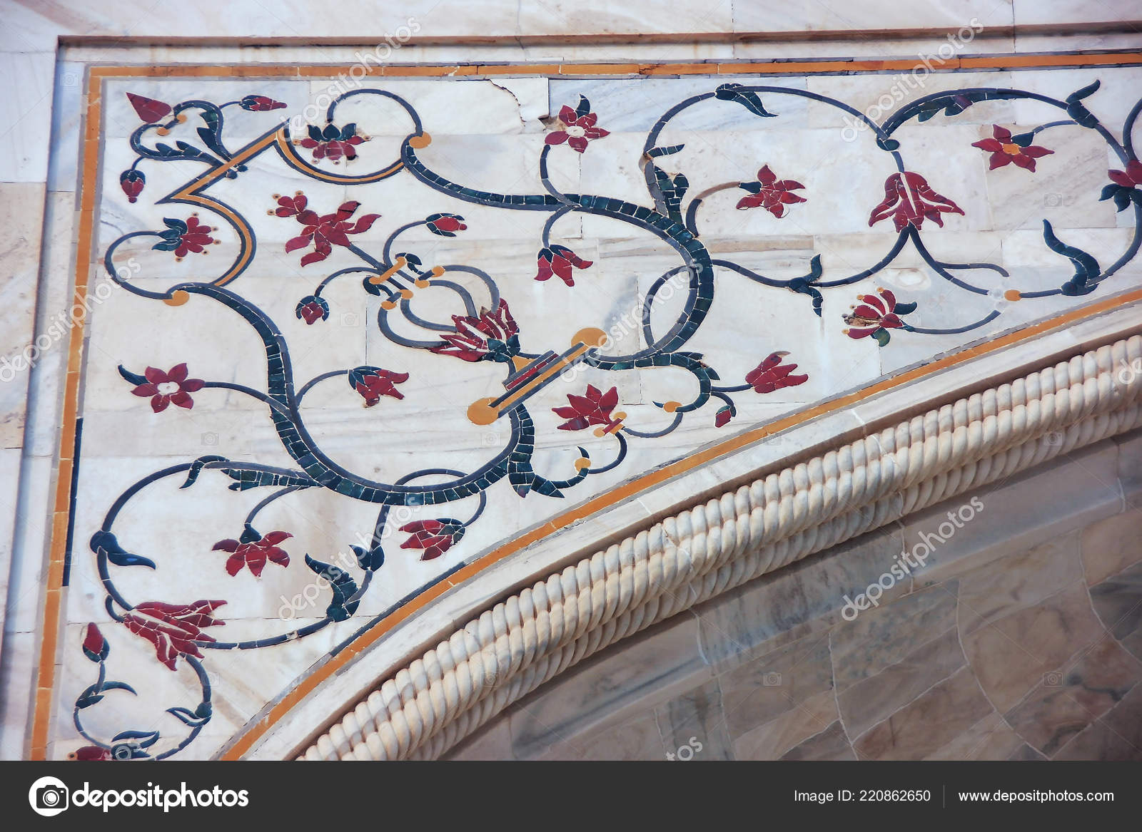 Plant Motifs Taj Mahal Exterior Agra Uttar Pradesh India Exterior