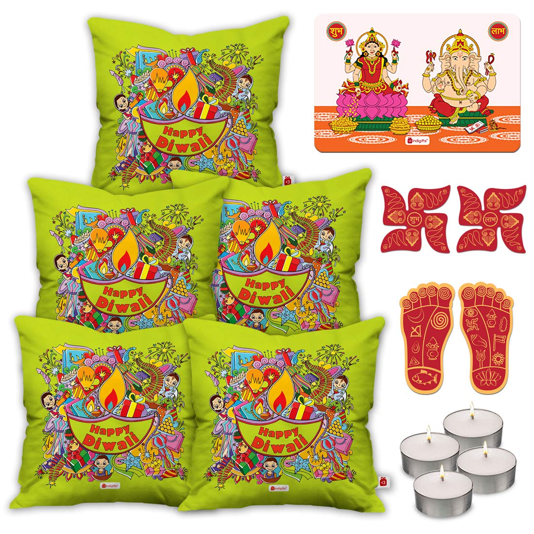 Buy Indigifts Diwali Decoration Items Set Of 5 Green Cushion Cover