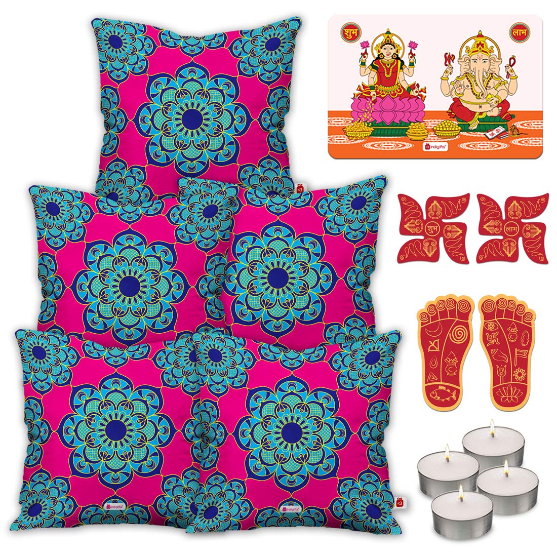 Buy Indigifts Diwali Decoration Items Set Of 5 Pink Cushion Cover