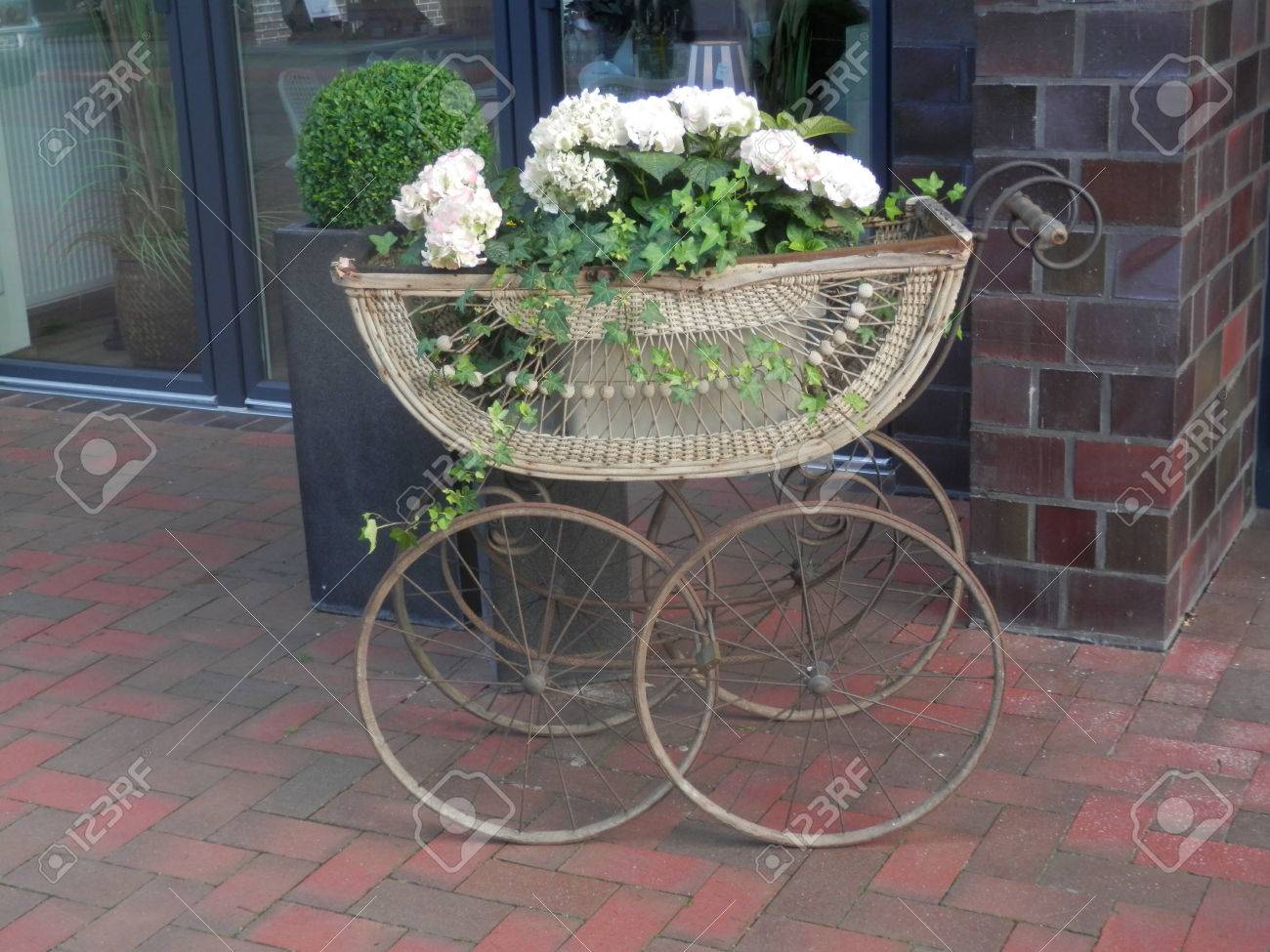 Decorative Old Fashioned Pram With Flowers In Bad Zwischenahn