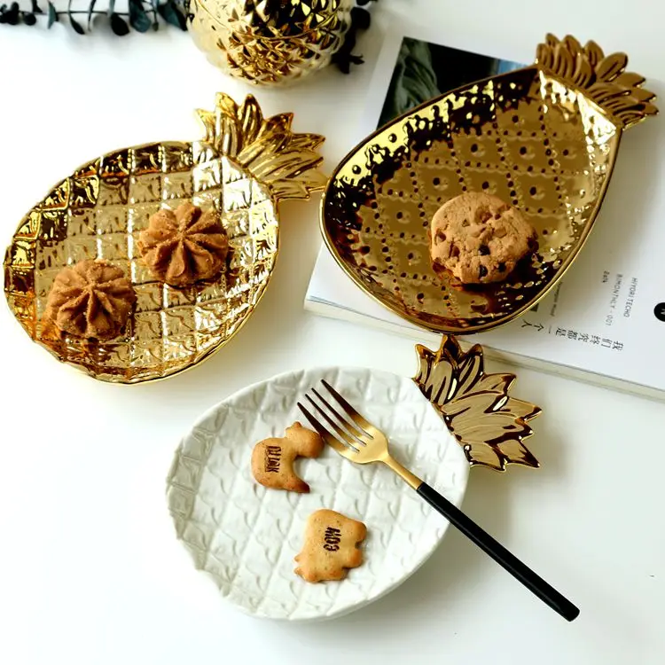 Nordic Plated Ceramic Golden Pineapple Plate Jewelry Plate