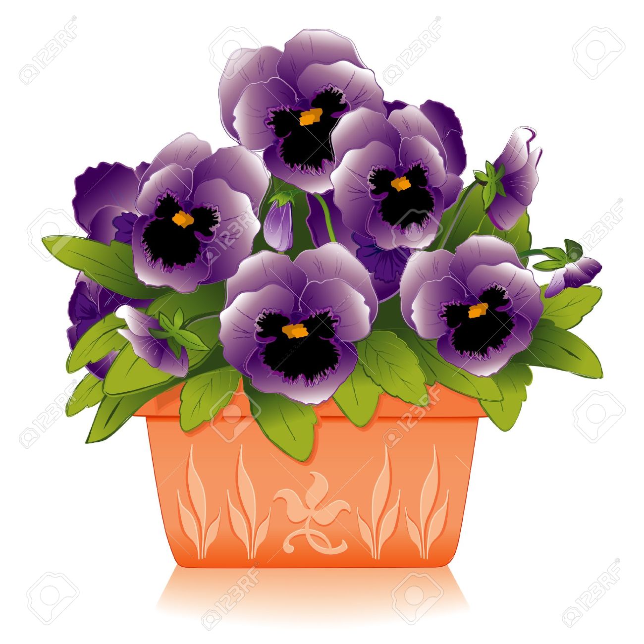 Lavender Pansy Flowers In Decorative Clay Flowerpot Planter