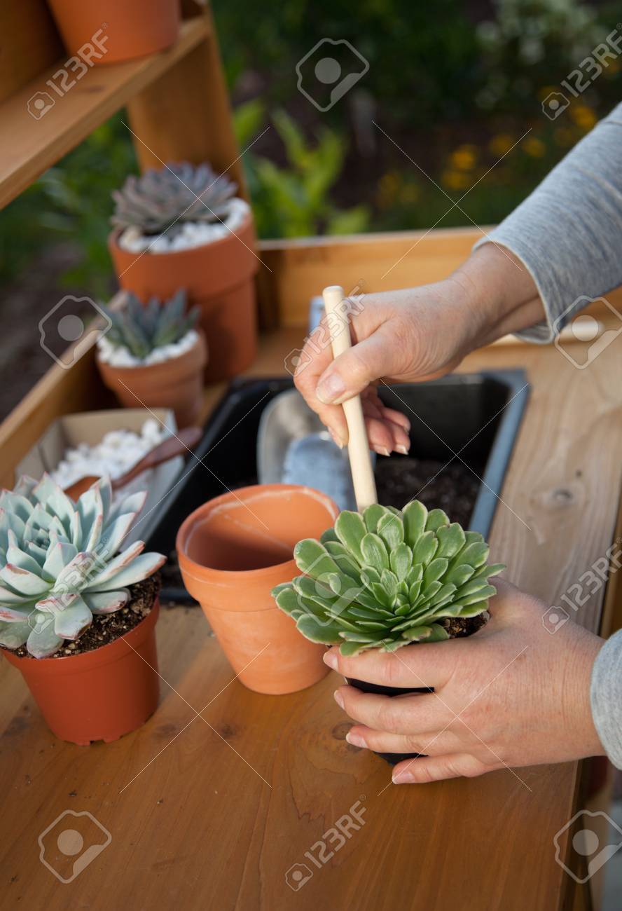 Decorating Clay Pots With Succulent Plants With Marble Gravel