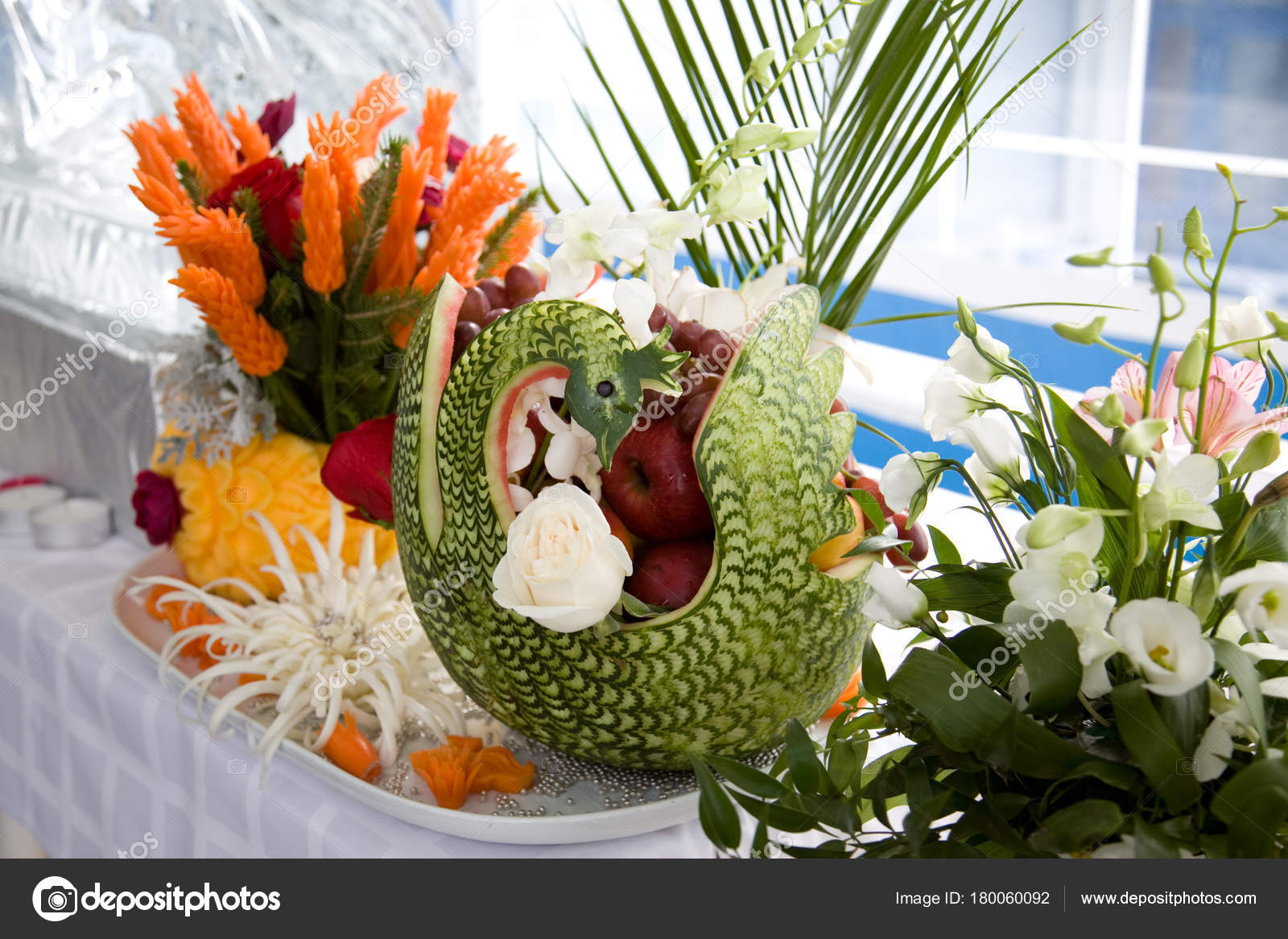 Food Decoration Carving Wedding Banquet Table Stock Photo
