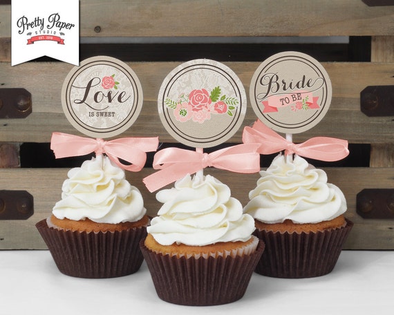 Cupcake Toppers Rustic Lace Bridal Shower Instant Download