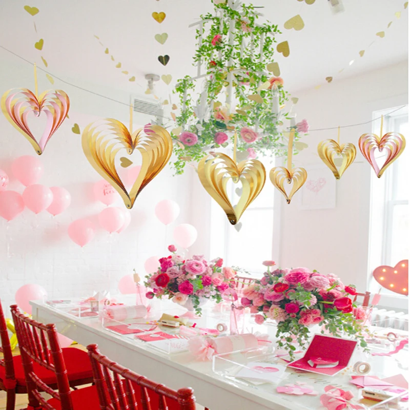 Heart Shape 3d Hanging Ornament Gold Pink Red Mirror Jam Diy Party