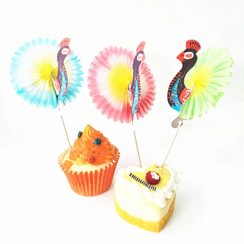 25pcs Peacock Cake Flag Fruit Fork Cocktail Decor For Wedding