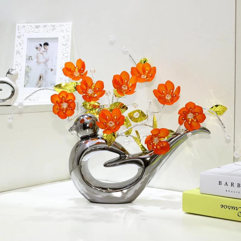 Crystal Flower Ceramic Bird Vase Decoration Crafts Figurines Top