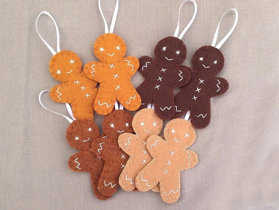 X3 Gingerbread Man Felt Christmas Decorations Folksy