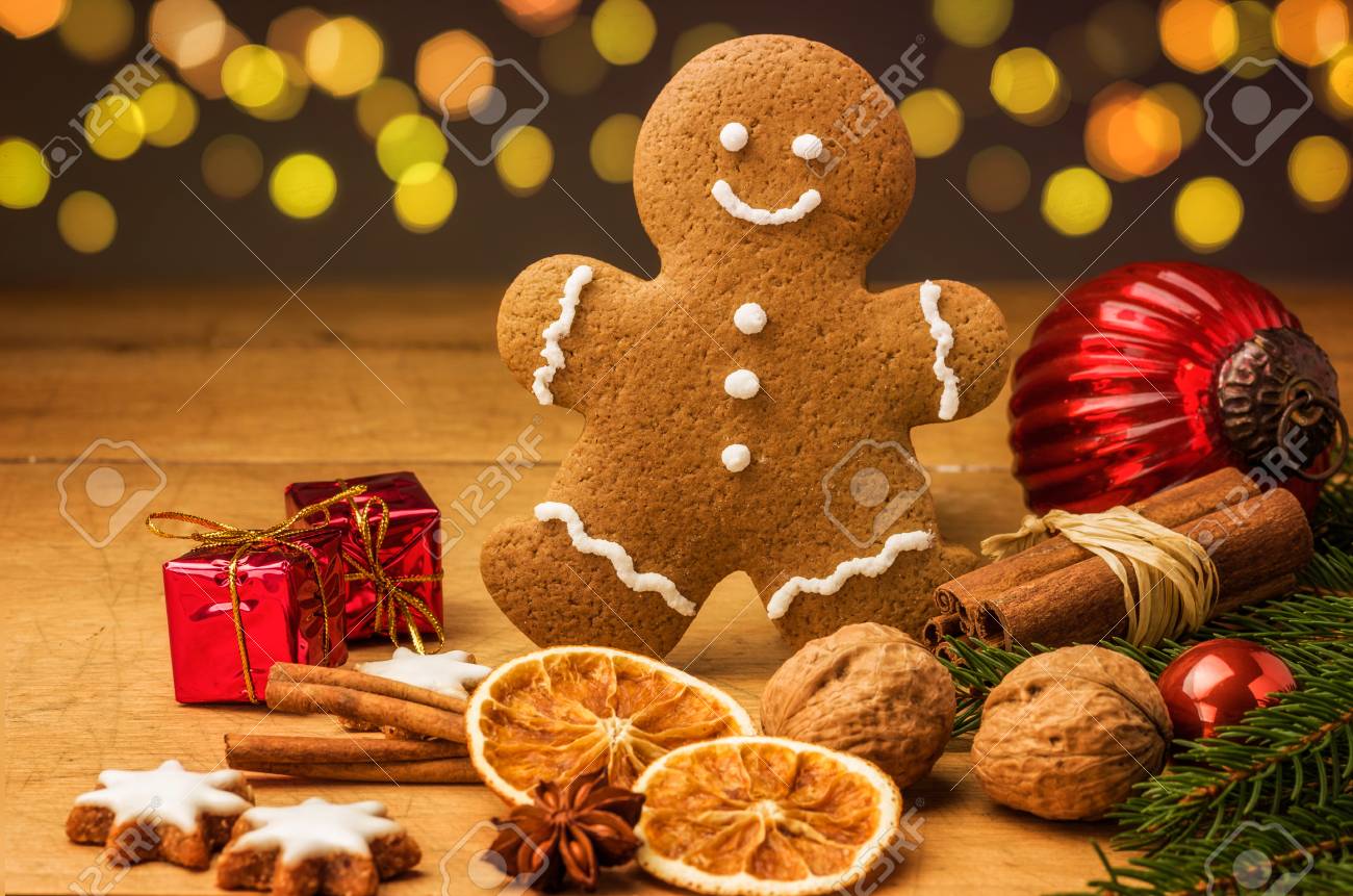 A Gingerbread Man With Christmas Decorations Stock Photo Picture