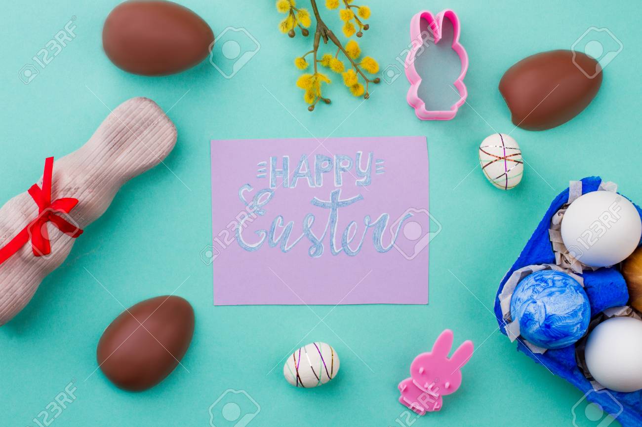 Easter Greeting Card Eggs And Sweets Chocolate Eggs Chicken