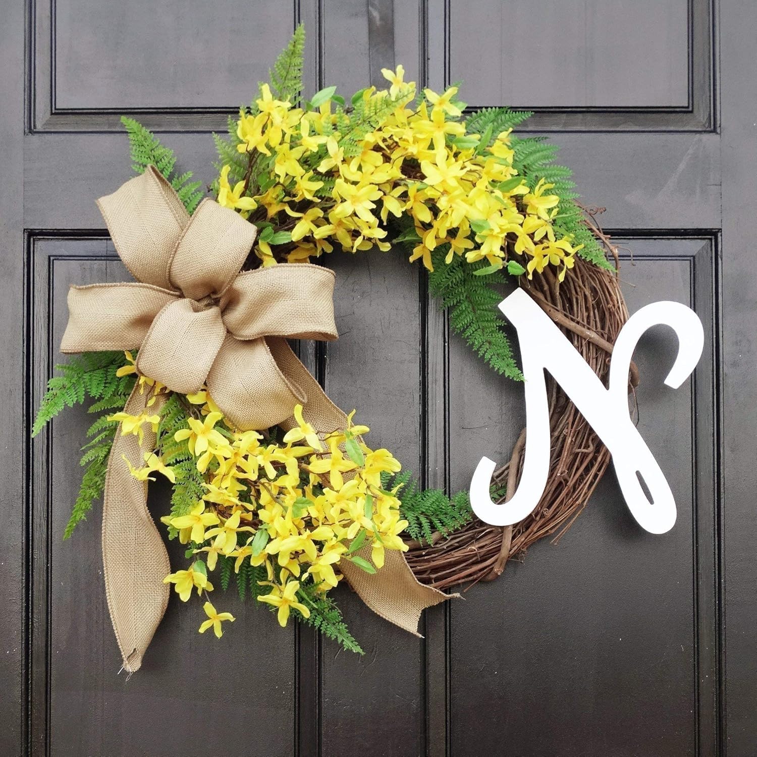 Amazon Com Summer Spring Yellow Forsythia Wreath With Burlap Bow
