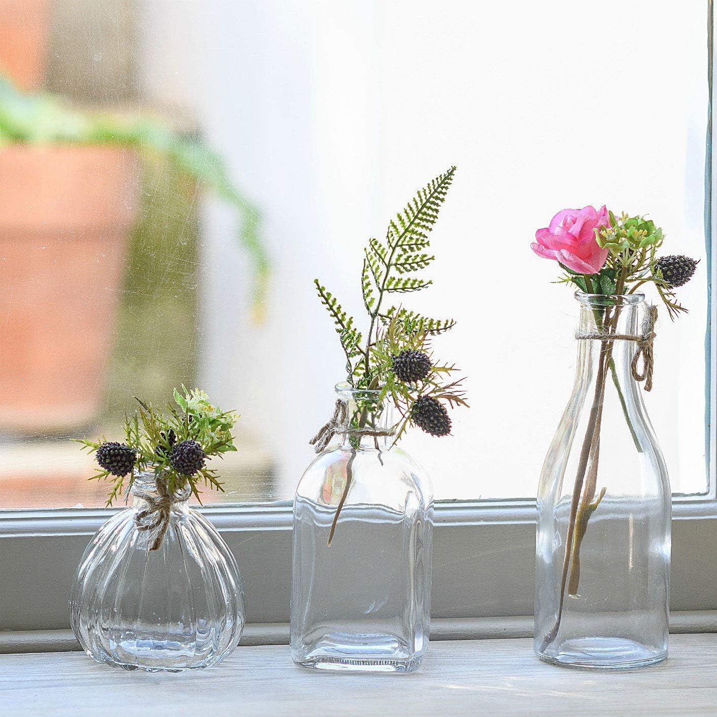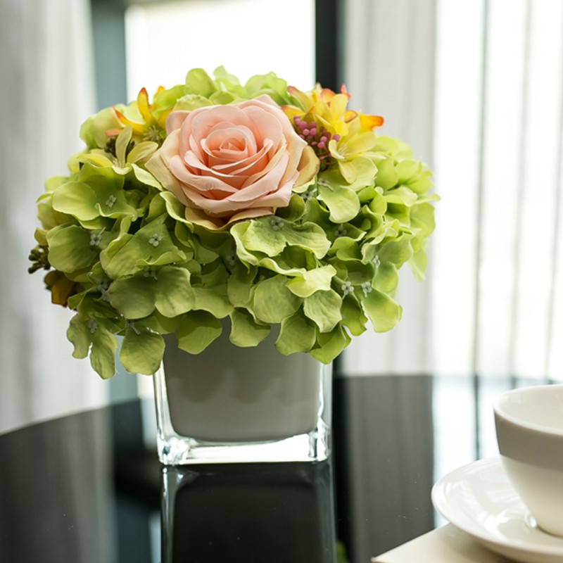 Artificial Flowers Rose Glass Bottles Set Livingroom Office Table