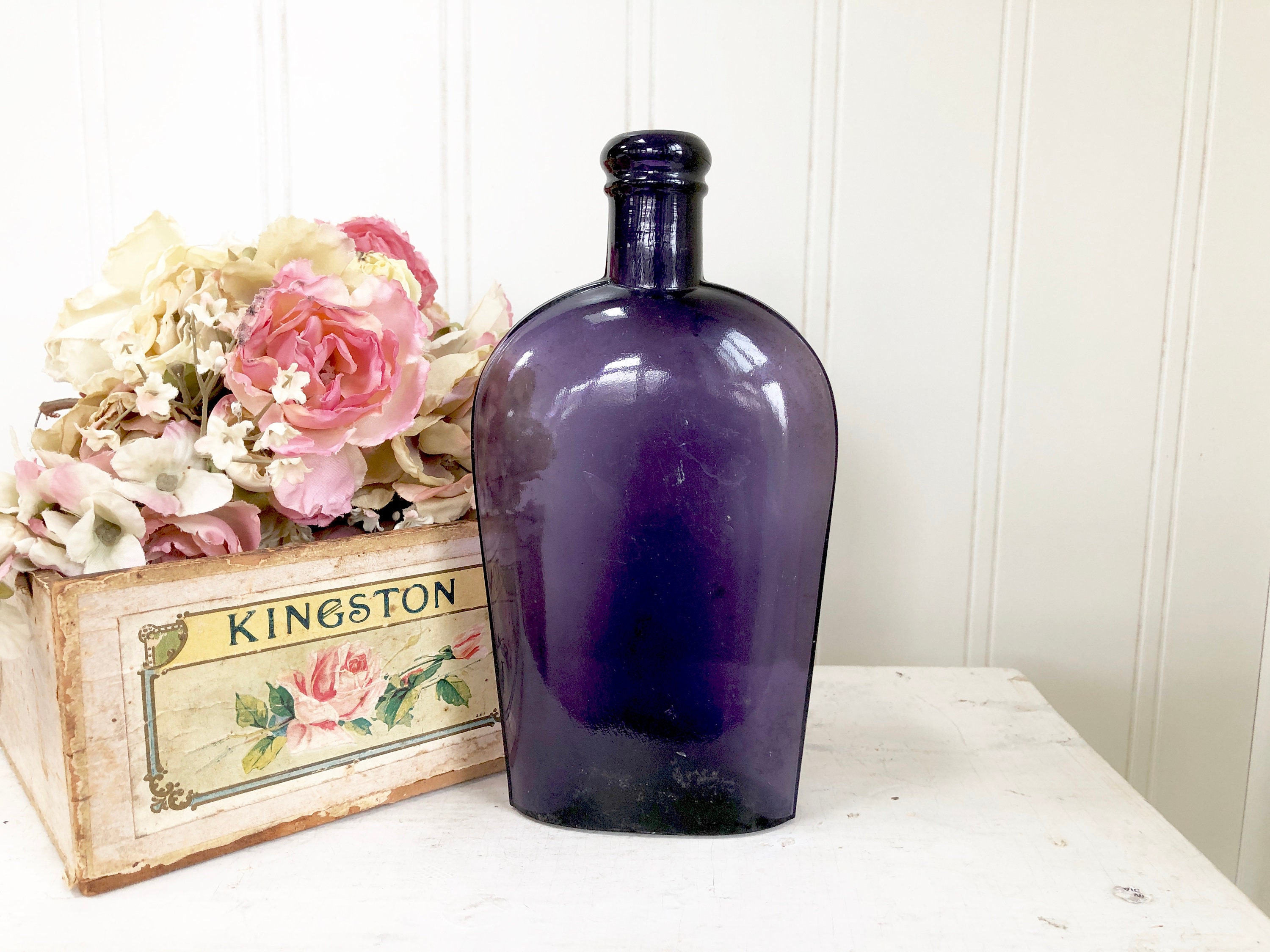 Vintage Purple Glass Bottle Amethyst Bottle Wedding Decor Etsy