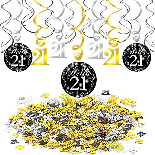Konsait 21st Swirl Birthday Hanging Decorations Black And Gold 15