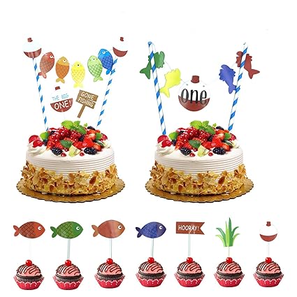 Home Garden Cake Toppers 2 Fishing Cake Designer Decoration