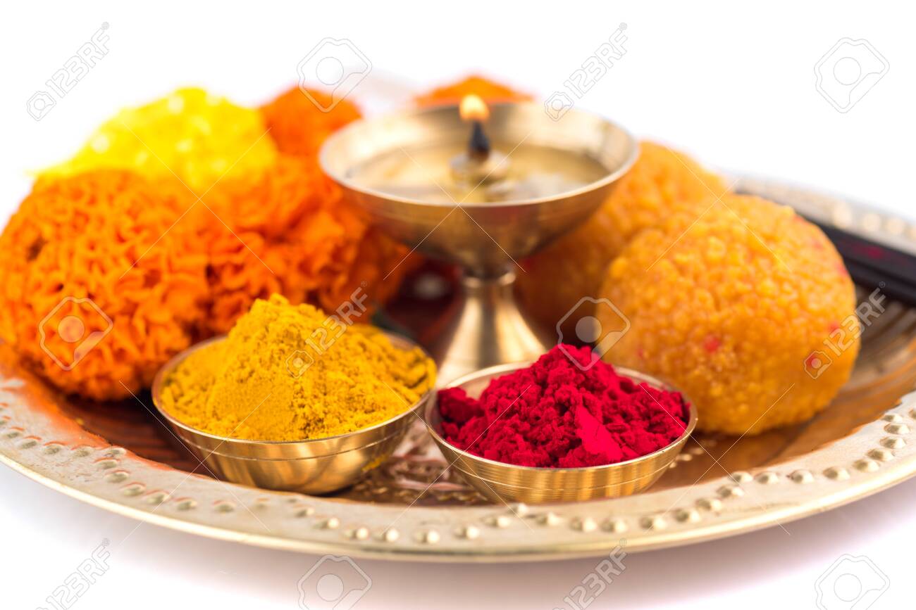 Beautifully Decorated Pooja Thali For Festival Celebration To