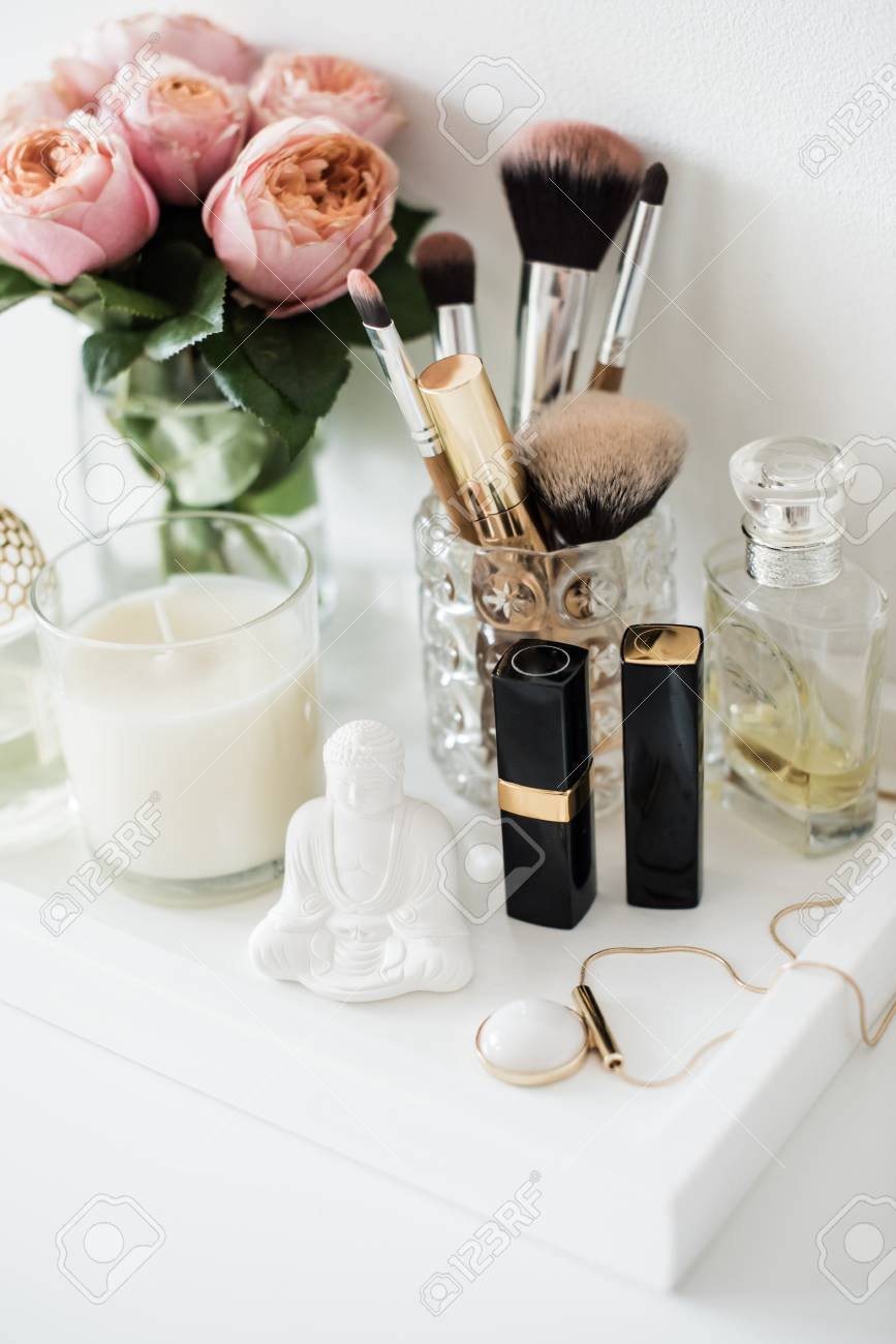 Ladys Dressing Table Decoration With Flowers Beautiful Details