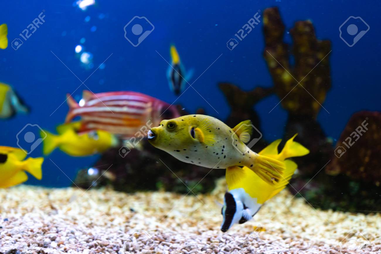 Close Up Beautiful Fish In The Aquarium On Decoration Of Aquatic
