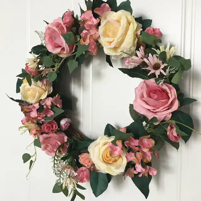 European Simulation Of Large Rose Wreath Silk Flower Simulation