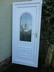 White Upvc Front Door Leaded Frosted Glass Panel Purple Flower