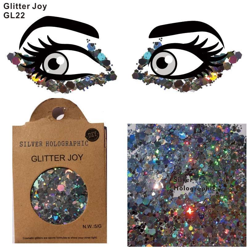 Gl22 One Pack Of Silver Holographic Body And Eye Glitter Sequins