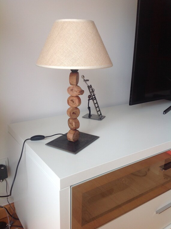 Table Lamp Made With Wooden Dowels And Iron Base Etsy