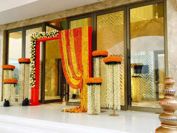 Entrance marigold flower gate decoration. Super simple marigold flower decoration ideas for your home from bridal bouquets to centerpieces marigold flower decoration makes gorgeous party decor for our homes. Mandap for springsummer. Marigolds from a garden i love.