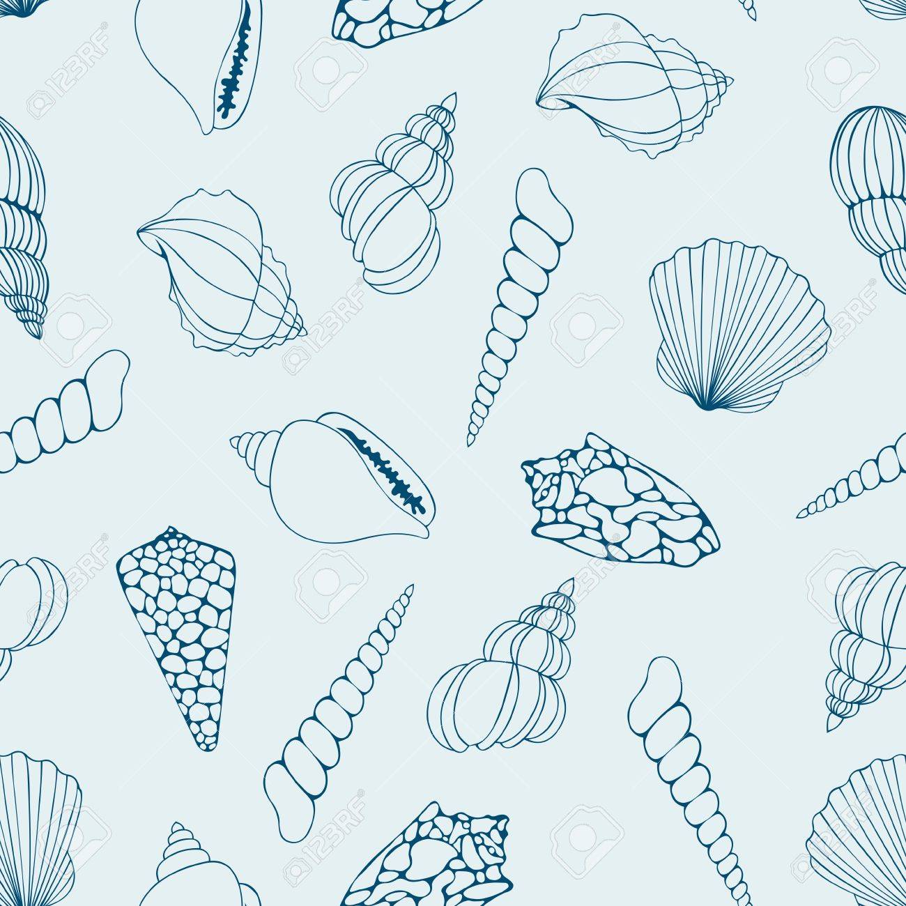 Seashells Contour Drawing Vector Seamless Pattern For Design