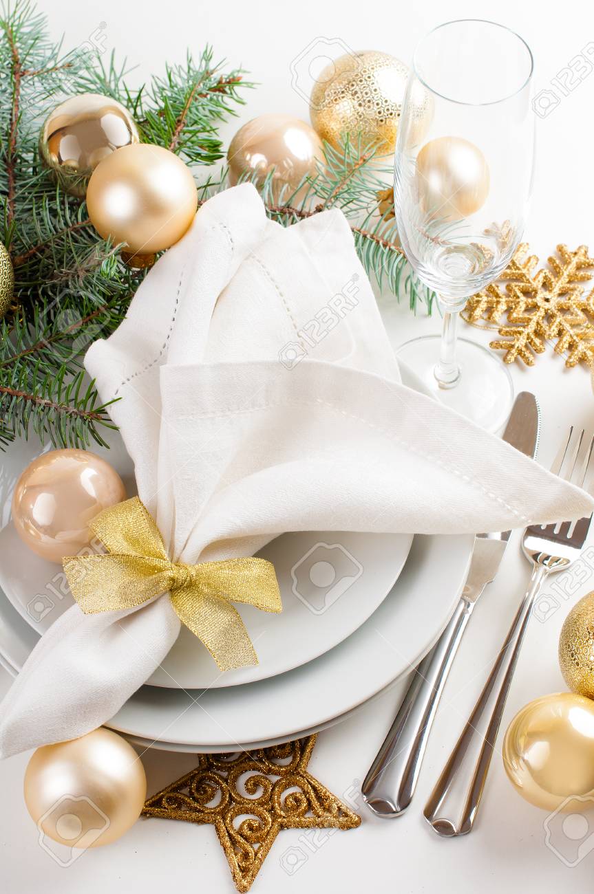 Gold Christmas Table Decorations Stock Image Image Of Plate
