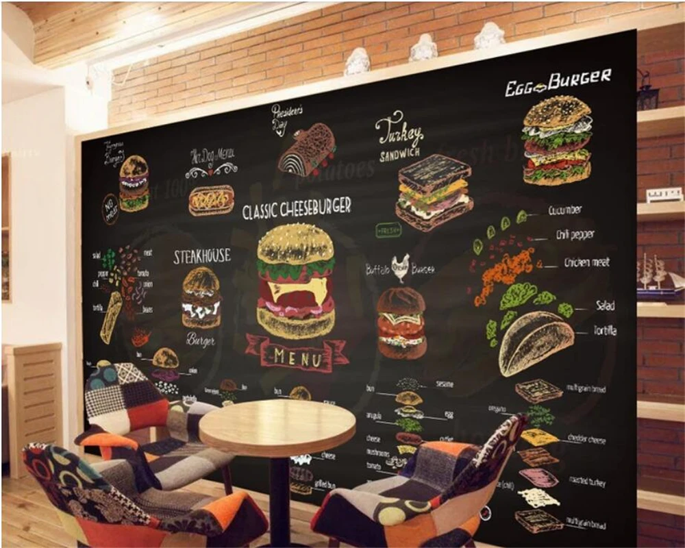 Photo Wallpaper Delicious Hand Painted Fast Food Murals Restaurant