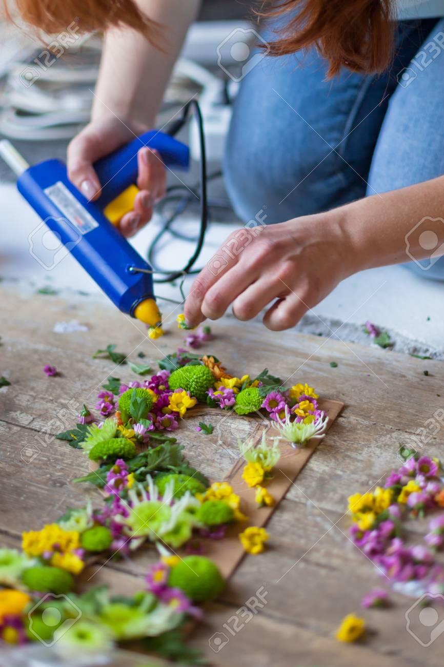 Arranging Artificial Flowers Vest Decoration At Home Young Woman