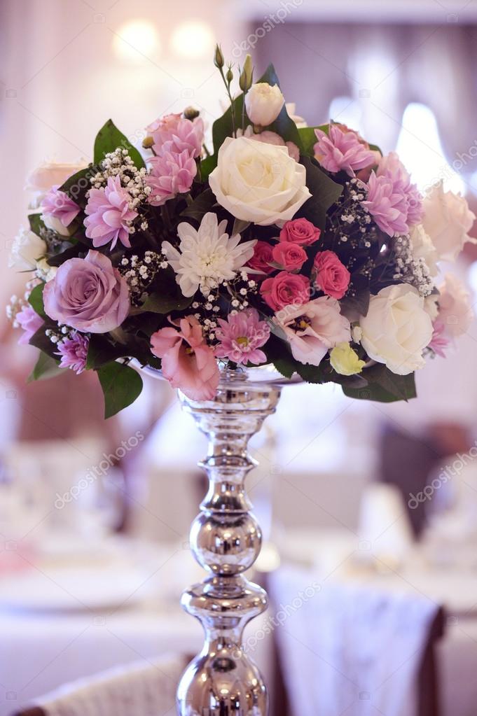 Beautifully Decorated Wedding Table With Flowers Stock Photo