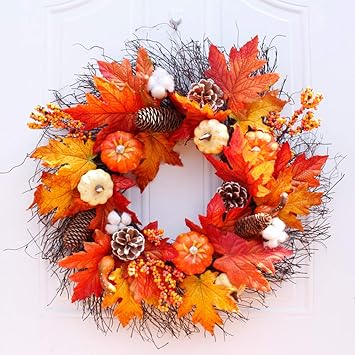 Amazon Com Lovelychica Fall Maple Leaf Wreath Christmas