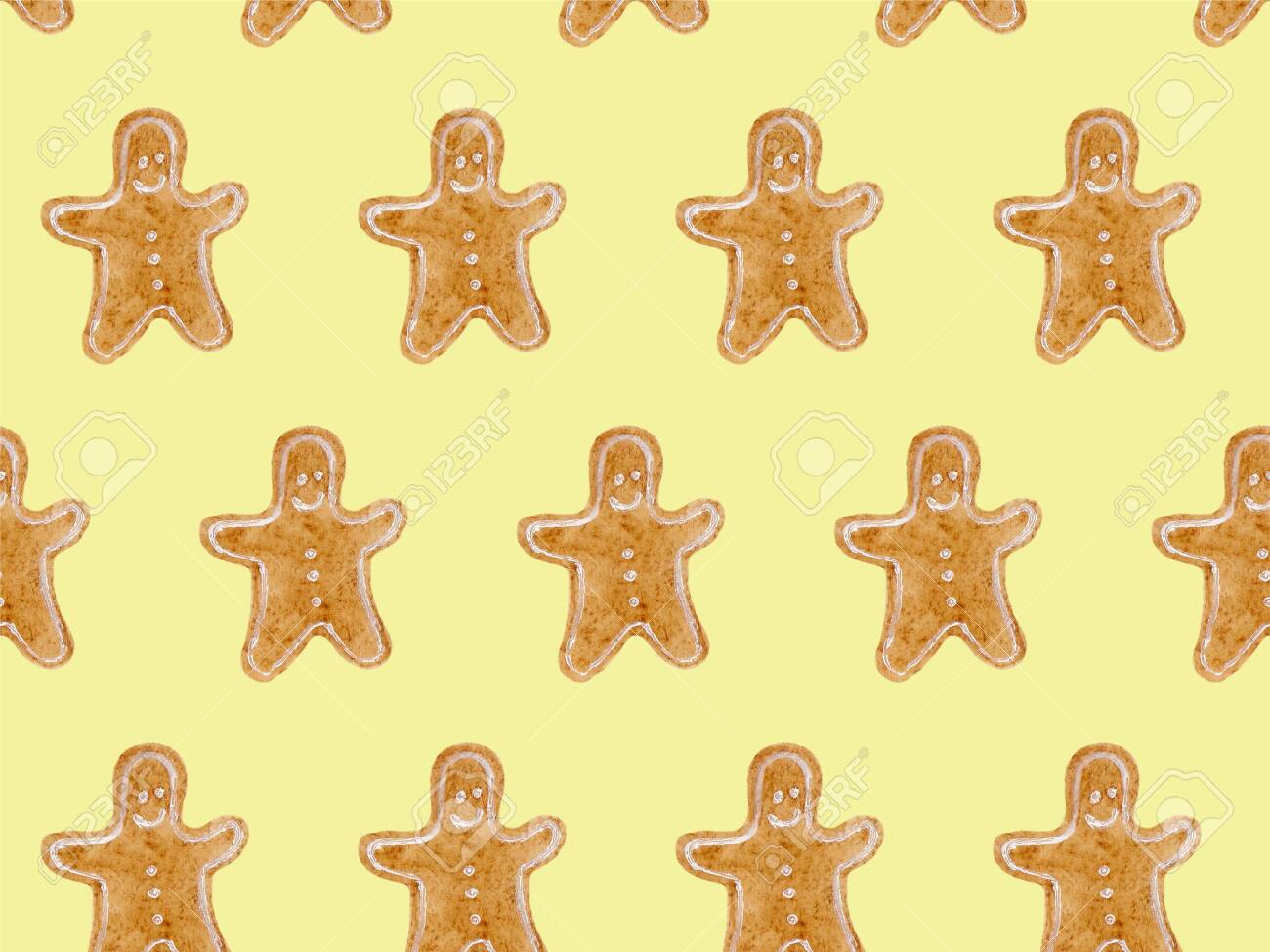 Seamless Watercolor Pattern With Brown Christmas Gingerbread Men