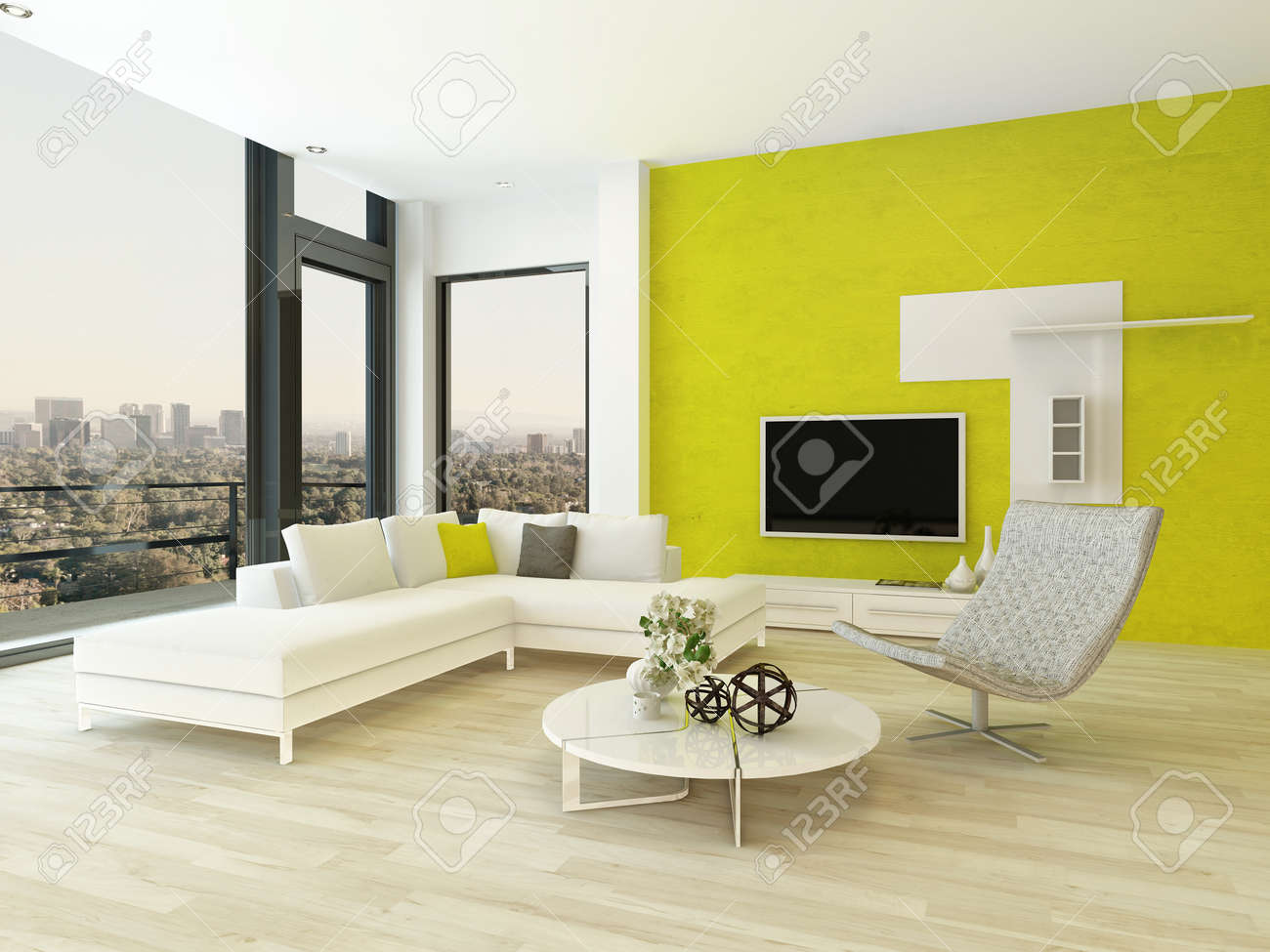 Luxurious Living Room With Big And Fancy Sofas Near City Stock