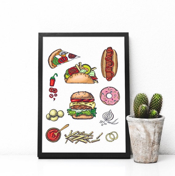Fast Food Print Fast Food Wall Art Food Poster Printable Wall Etsy