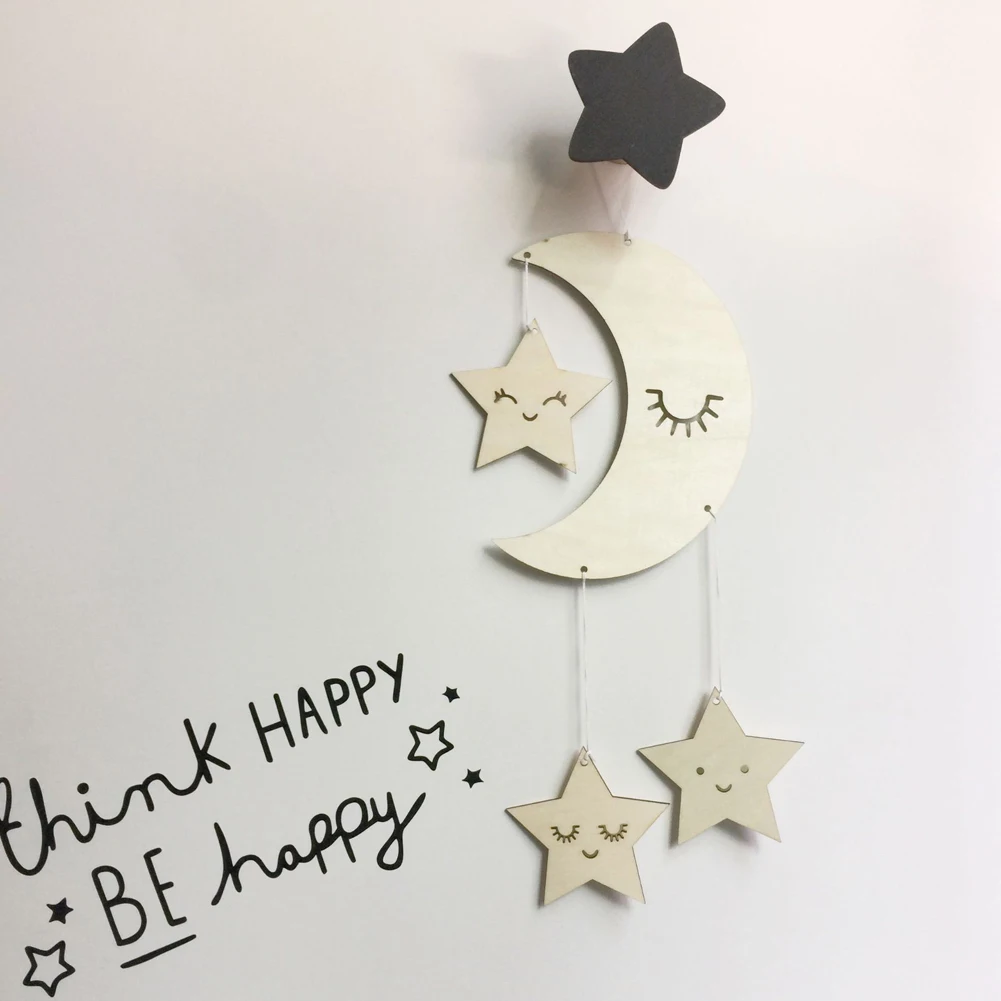 Nordic Simple Moon Cloud Star Wooden Wall Hanging Decor Diy Craft