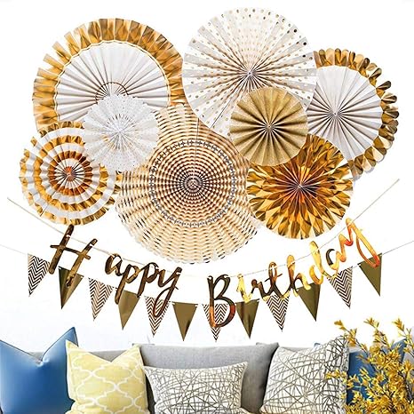 Buy Sadhsvi Party Decoration Paper Fan Set Of 8 Gold Online At