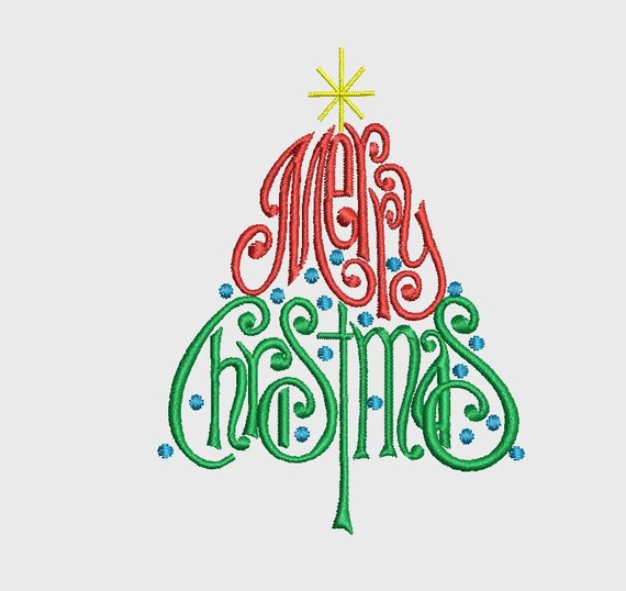 Merry Christmas Tree Embroidery File Word Art Decorative Etsy