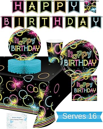 Amazon Com Glow Party Supplies Plates Cups Napkins Banner
