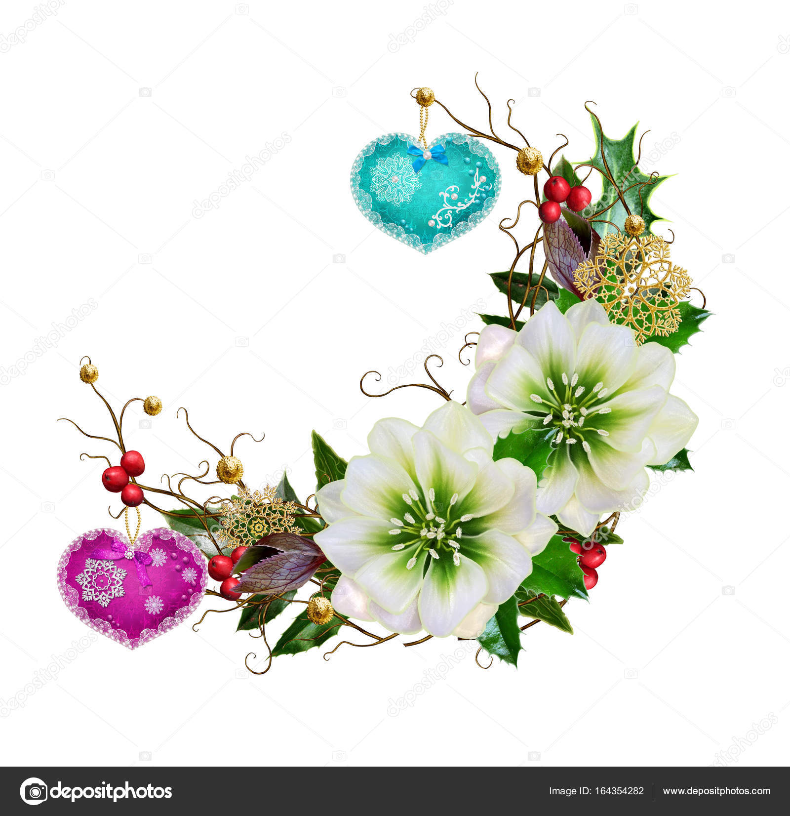 Flower Garland Of Winter Flowers Hellebore Decorated With Shiny