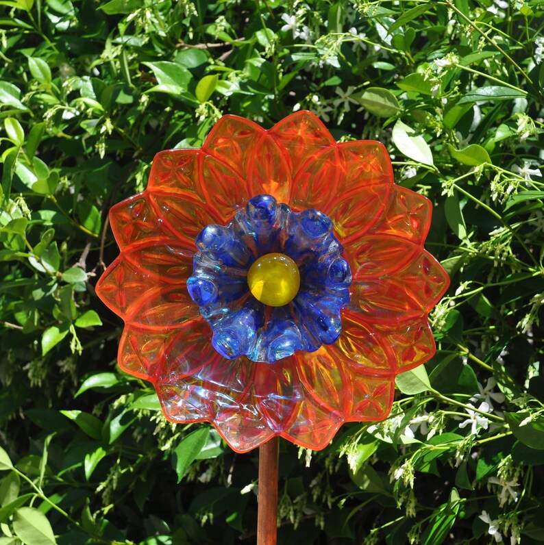 Recycled Glass Flower Garden Decoration Orange Vintage Cross Etsy